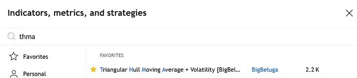 | 第一步 | THMA + Volatility (by Big Beluga) | 将 Length 改为 65;Volatility 改为 22 |