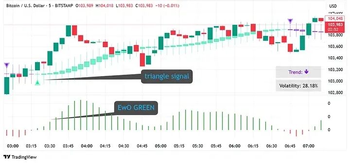 这套思路在国外交易圈子里讨论得挺多,核心是用一个能显示波动强度的”三角指标”,再配合一个判断大趋势的”波浪指标”。两个配合起来,能有效过滤掉不少杂音。关键是,这套方法在比特币、以太坊这类波动大的品种上,效果比较明显。