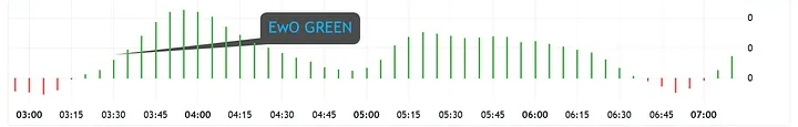 - EWO柱体 在零轴上方,且颜色为绿色上升状态。