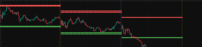 第二个是”Supertrend and PP dynamic zone”,这名字长了点,但功能强大。它会在图表上自动画出红绿相间的区间: