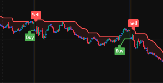 Supertrend这名字挺唬人,其实思想朴实得很。它就是一条跟着价格波动而移动的”分水岭”,价格在水上就是多头主场,在水下就是空头主场。
