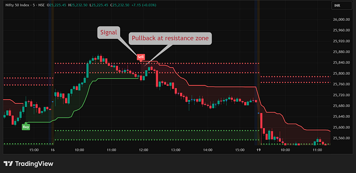 - 行动:在Supertrend空头方向时,价格刚到第一个支撑区就动手