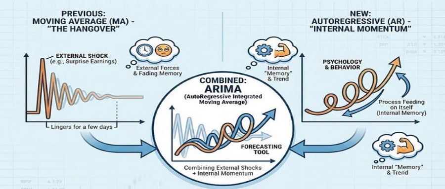 在真实的金融市场中,价格走势既受历史价格影响(惯性),也受突发事件影响(冲击),单一模型往往无法完整描述这种复杂性。