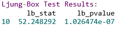 • 如果 p 值 < 0.05:失败。残差仍然存在模式。我们需要一个更好的模型(或许可以增加 p 值或 q 值)。