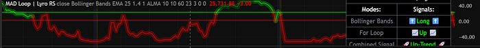 MAD Loop 是这套系统的核心决策器。它的全称是 Moving Average Divergence Loop,也就是「移动平均线背离循环」。说白了,这是一个能够识别价格是否处于趋势中心或趋势边缘的振荡器。